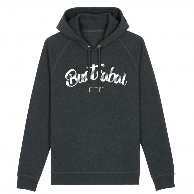 Felpazko kaputxadun jertsea gris iluna, grisa eta beltza.